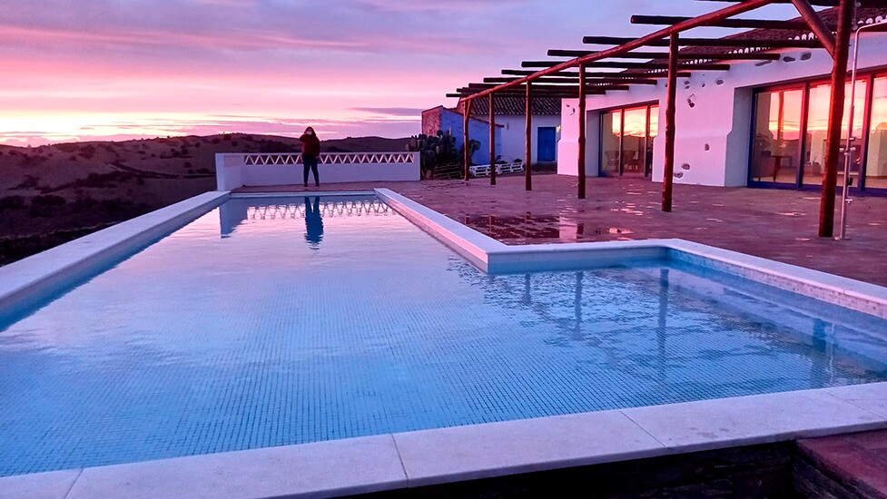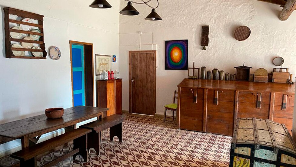Salão multiusos – Um antigo celeiro é agora um amplo salão com130 m2, tem no seu centro o pilar que o suporta, onde foi embutido um recuperador de calor com duas frentes. Duas grandes portas de vidro ligam o salão ao espaço exterior e envolvente da piscina. O interior e o exterior tornam-se um espaço único. Tem 3 wc’s, ar condicionado e wifi. Pode ser alugado para retiros, formações, festas, ou para usufruir enquanto hóspede.
