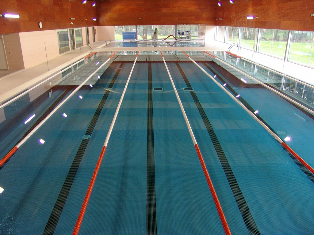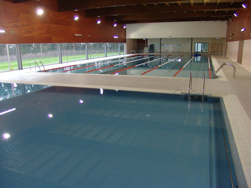 Dispõe de dois tanques cobertos (25x12,5 e 12,5x6m2), quatro balneários com capacidade para utilização simultânea de mais de duas dezenas de utentes, gabinete médico e fisioterapia, sala de formação e um apoio de bar, podendo ainda, no Verão, abrir ao exterior, já que dispõe de logradouro relvado.