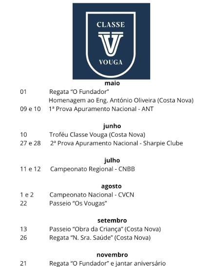 Apresentamos o Calendário de Atividades 2026 da Classe Vouga - APCV.