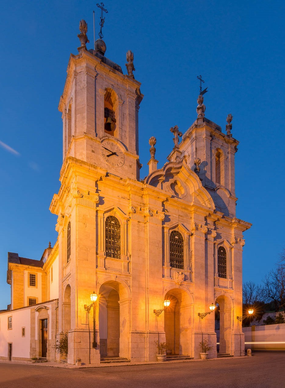 Apresenta duas elegantes torres sineiras e uma movimentada fachada dividida, a toda a altura, por seis pilastras de capitéis jónicos que definem os espaços onde se abrem os três janelões gradeados e os três pórticos frontais de galilé.