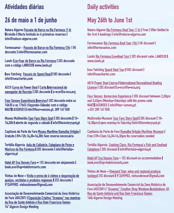O programa completo da Semana Náutica de Faro onde os interessados podem consultar todas as atividades, horários e informações sobre as condições de participação pode ser acedido em www.nauticalfaro.com
