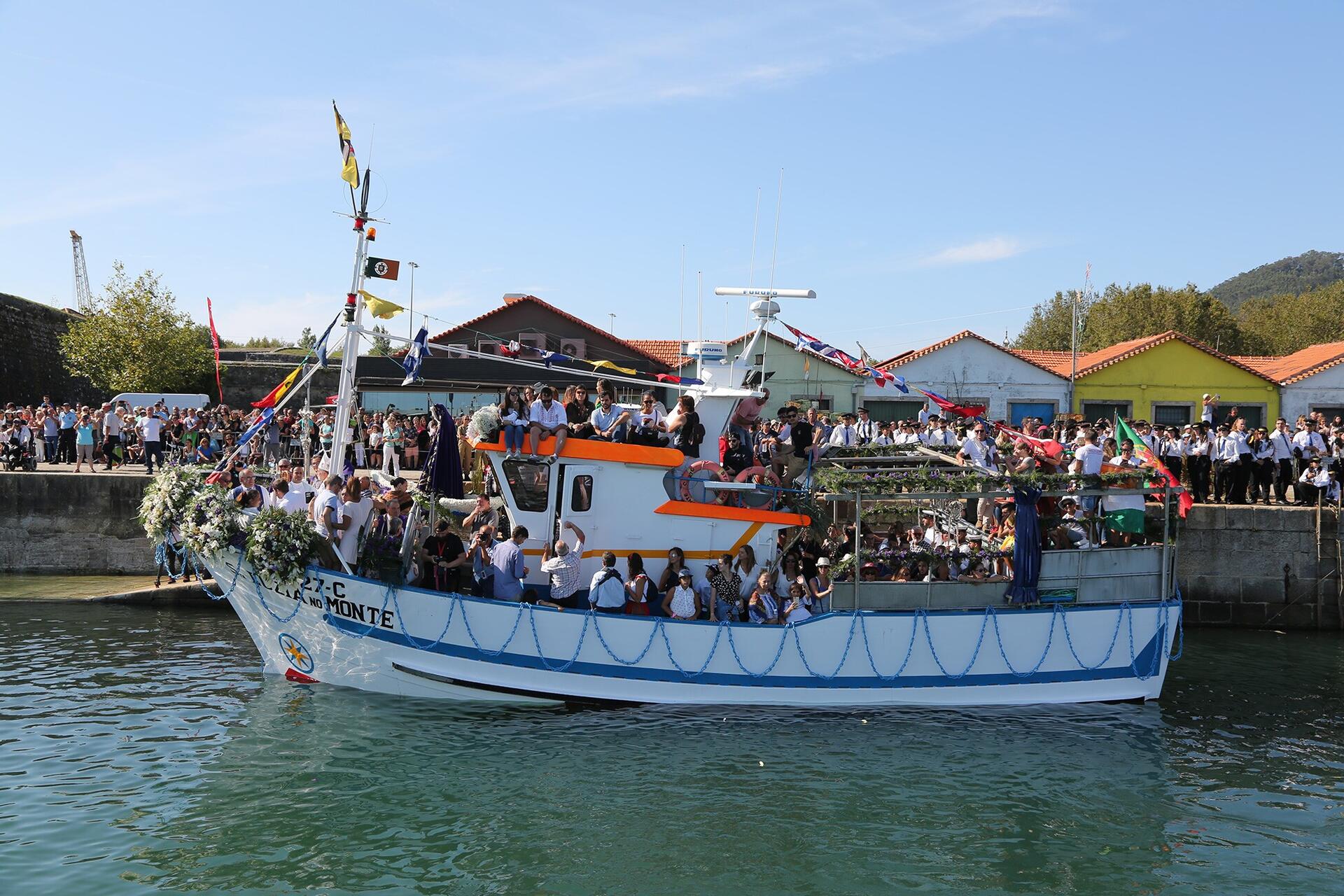 Num momento de devoção e orgulho, as embarcações são abençoadas para depois levarem ao mar e ao rio as imagens de Nossa Senhora d’Agonia, de Nossa Senhora de Monserrate, de Nossa Senhora dos Mares e de São Pedro. Logo depois, pelas margens do rio Lima, milhares de pessoas emocionadas saúdam a passagem dos barcos com fortes aplausos.