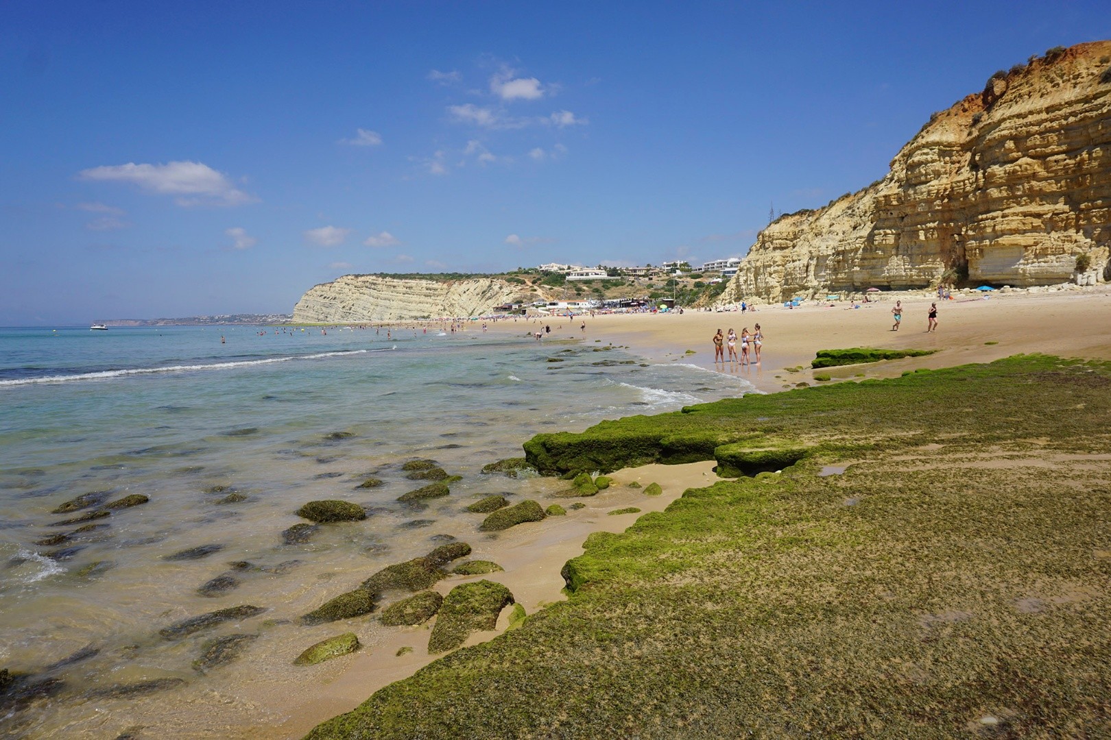 Ladeada por arribas altas, a encantadora Praia de Porto de Mós é como que uma comprida língua de areia dourada, banhada por um mar de águas calmas de tons que se esbatem entre os azuis e os verdes.