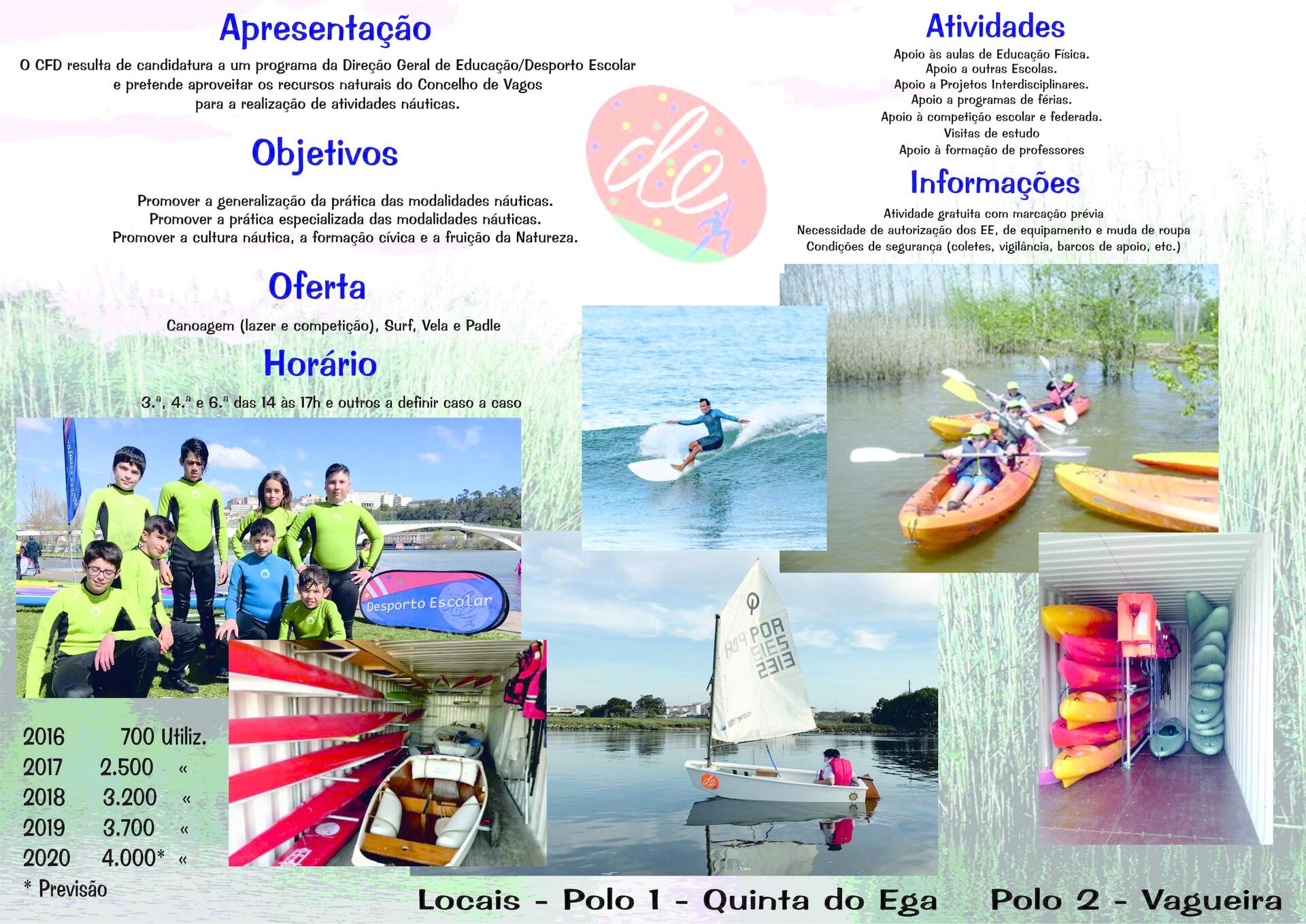 Agrupamento responsável pelo Centro de Formação Desportiva de Desportos Náuticos do Agrupamento de Escolas de Vagos, nas modalidades de canoagem, stand up paddle (SUP), surf, vela e remo.