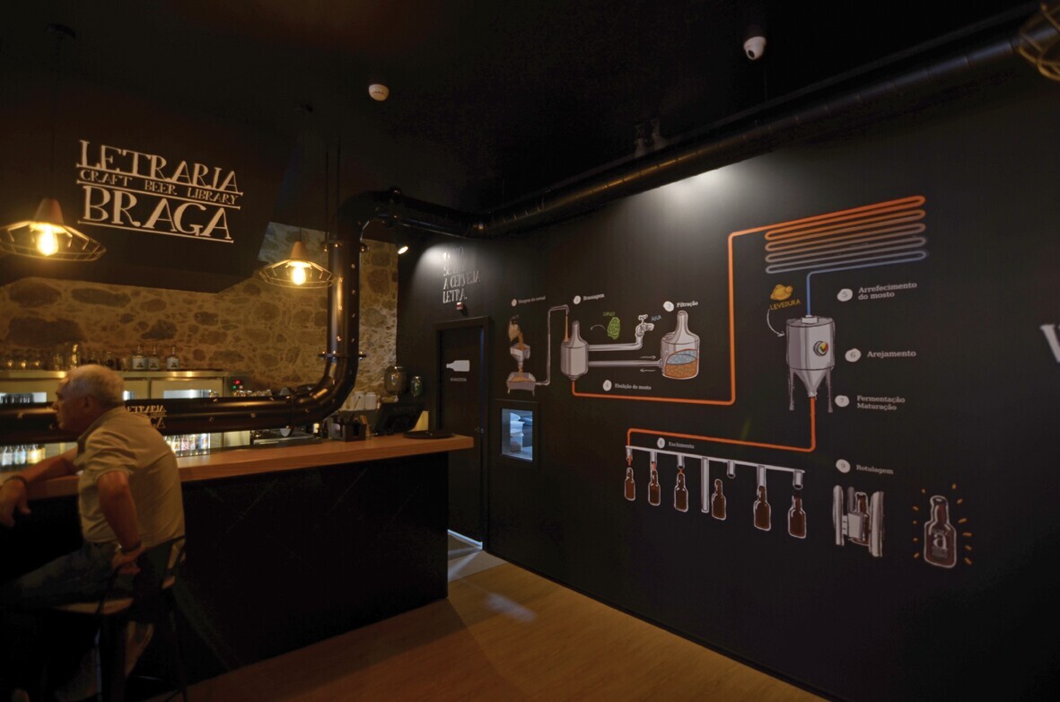 Em Vila Verde, o pub e a fábrica estão separados por uma parede de vidro, através da qual podes ver a zona de produção enquanto petiscas e saboreias as Letras da casa.