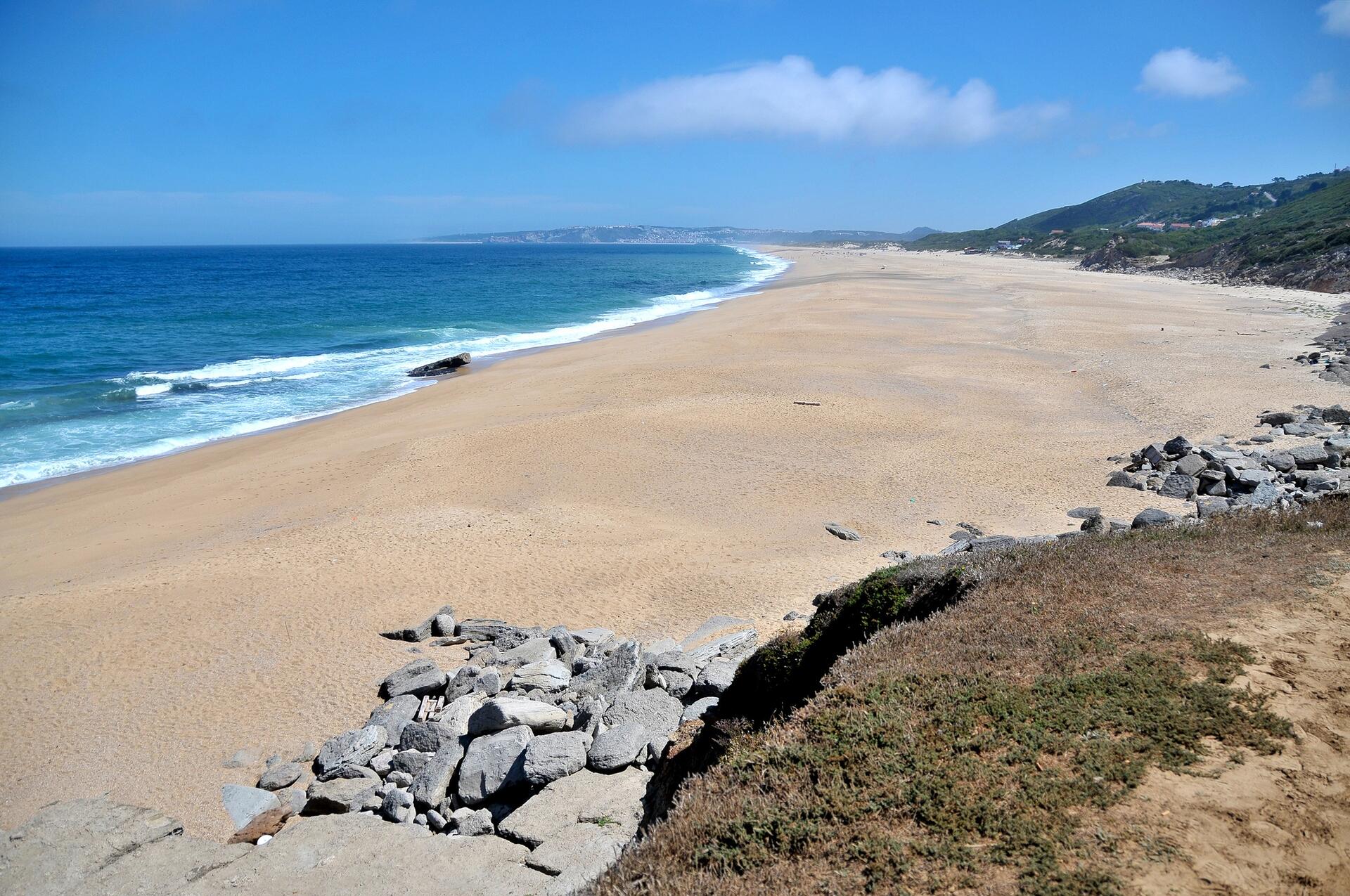 Praia de vasto e sossegado areal, mar revolto, ideal para passeios a pé, para os amantes da pesca desportiva e também para a prática de parapente e asa delta.