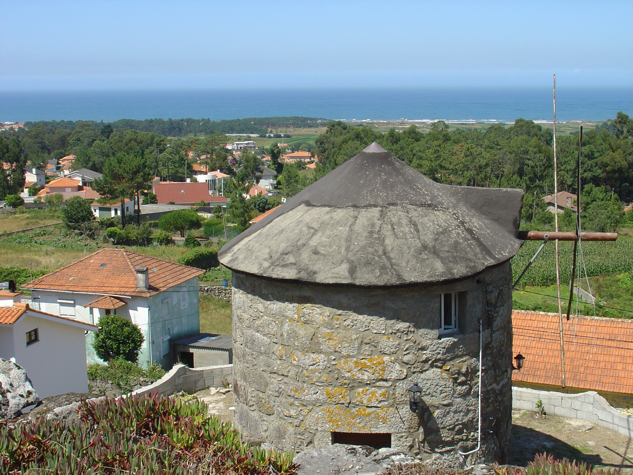 Moinho dos séc. XVIII, são edifícios de corpo cilíndrico, construídos em granito e localizados na encosta do monte, onde os ventos predominantes podiam ser bem aproveitados.