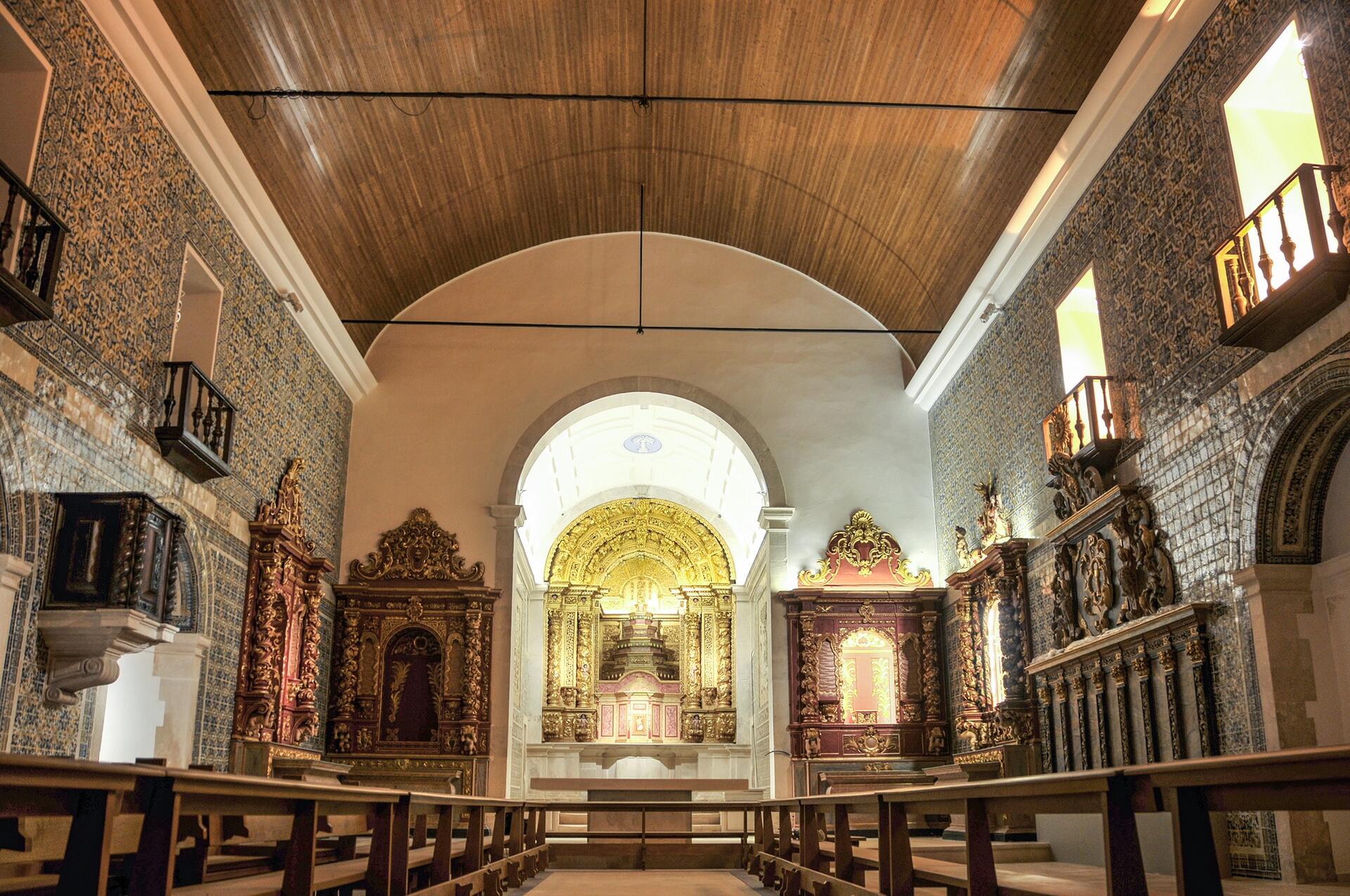 As paredes da nave e da capela-mor são revestidas por um silhar de azulejos tipo “padrão”, verdes, azuis e amarelos, do século XVII, rematados por azulejos tipo “tapete”.