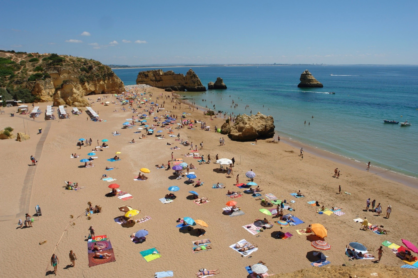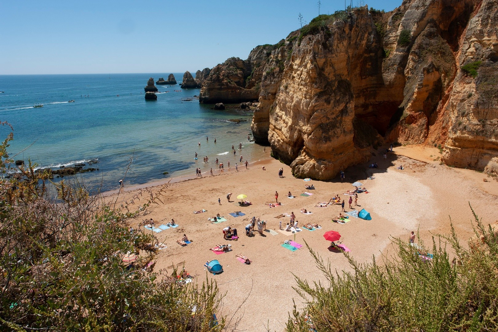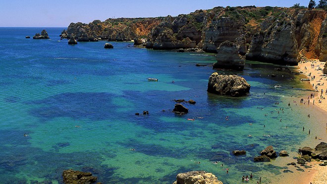 Abrigado entre falésias, o areal da Praia de Dona Ana, banhado por um mar de águas límpidas e tranquilas, é uma das imagens mais divulgadas das praias do Algarve.