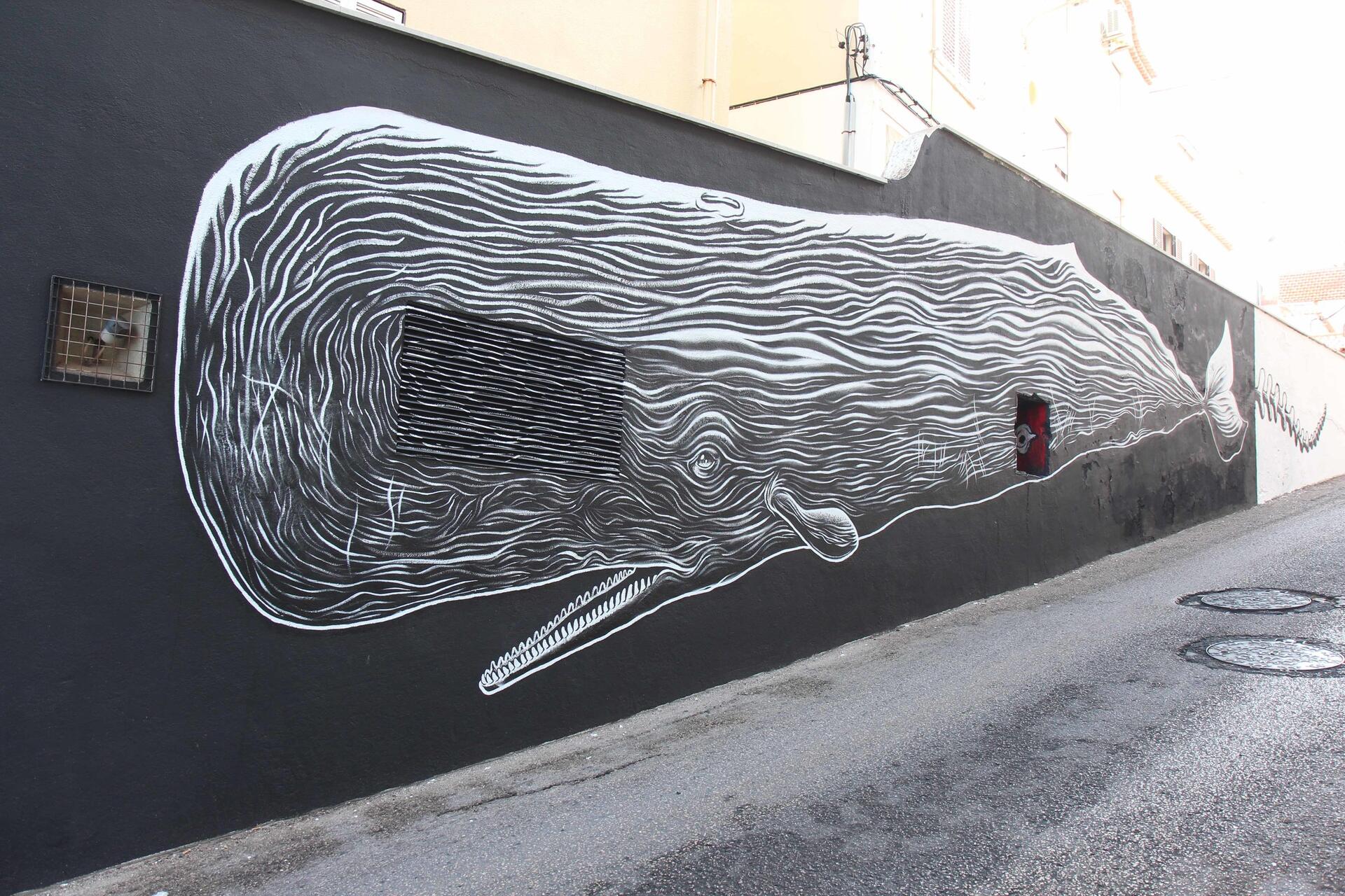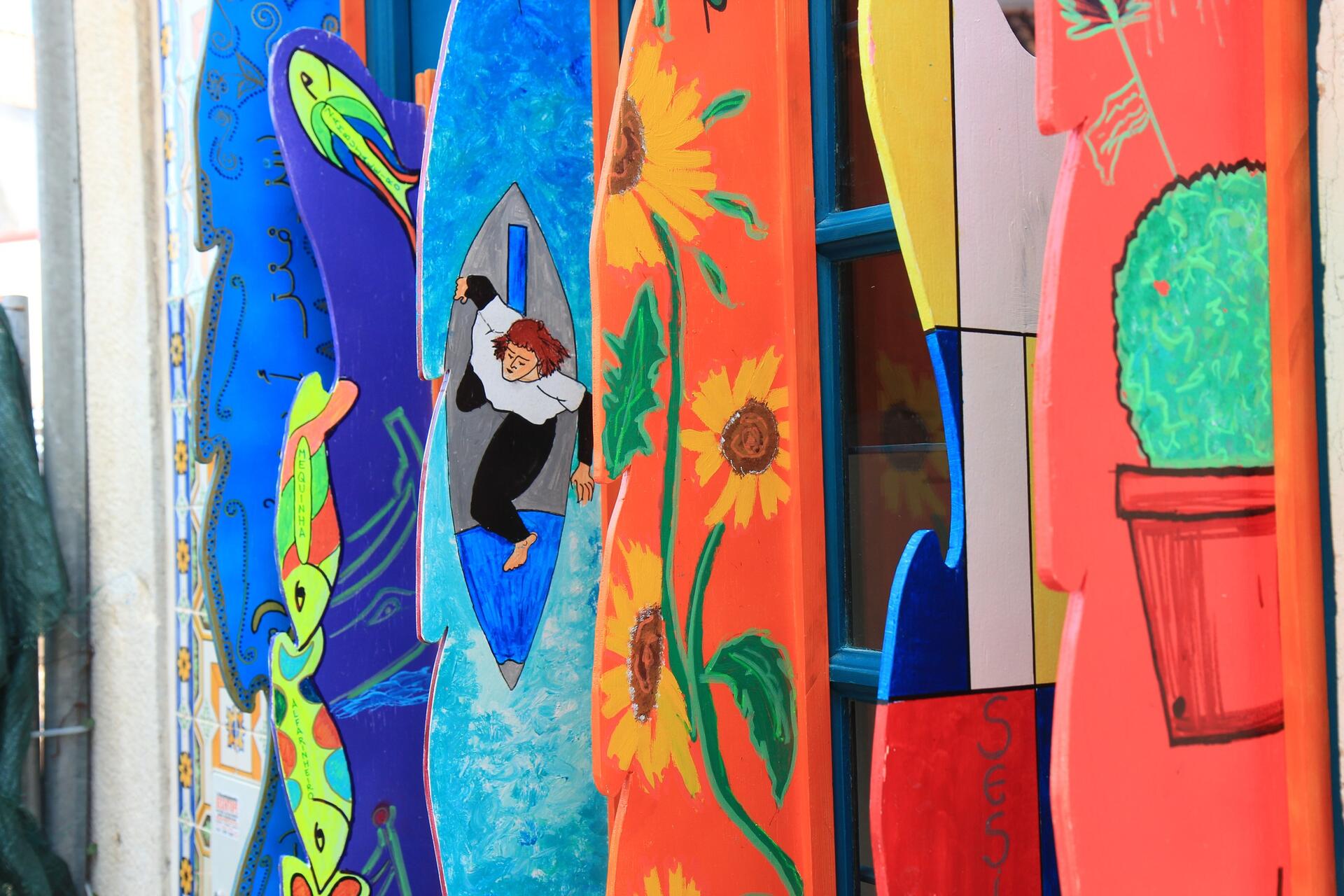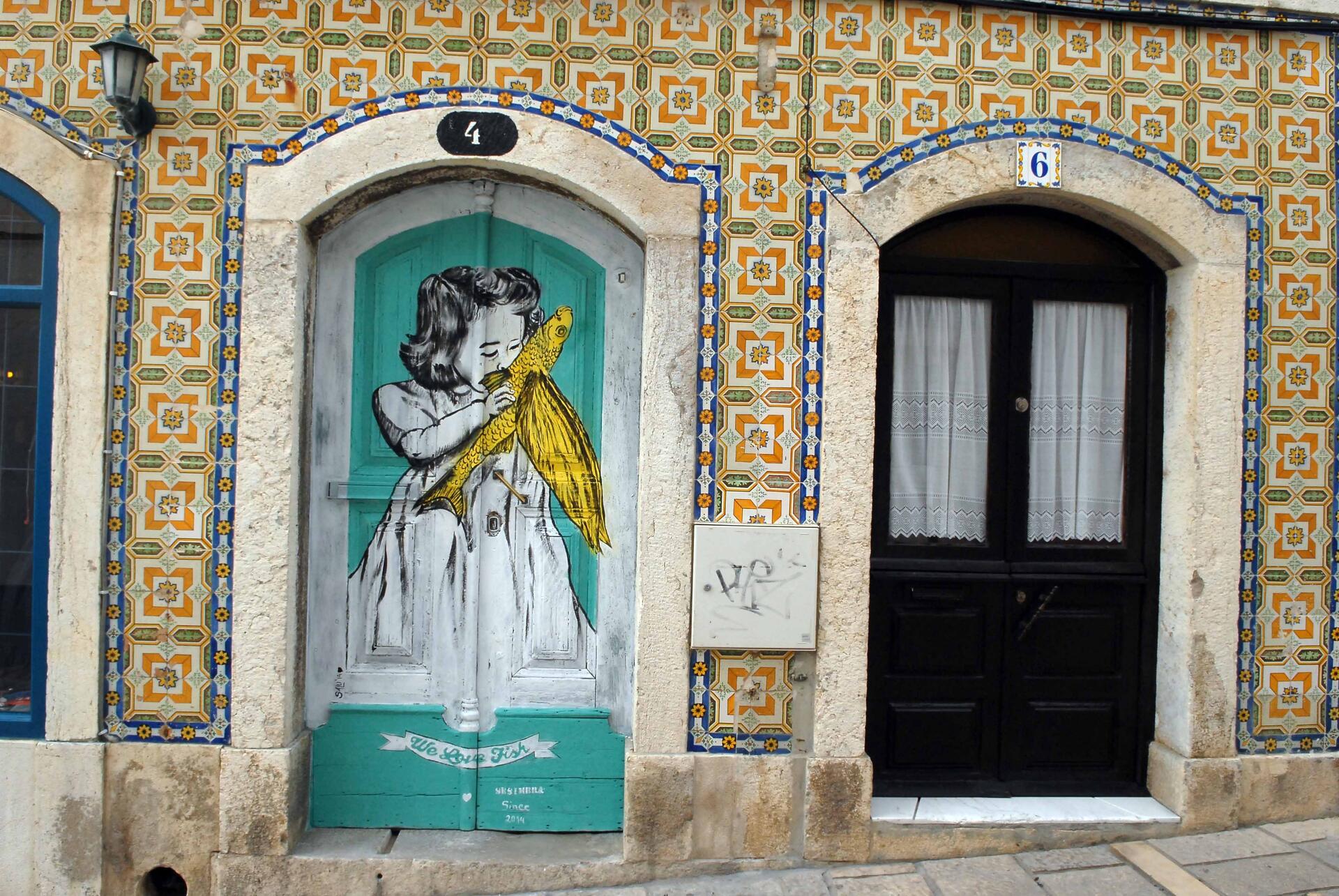 A porta We Love Fish, de Salomé Afonso, na Rua Jorge Nunes, que foi considerada uma das mais bonitas do mundo, o mural em homenagem ao mestre Bauça, no Largo de Bombaldes, do artista Mário Santos, a emblemática baleia que esteve muitos anos na Rua D. Afonso Henriques, em frente ao Hotel SANA, da autoria do sesimbrense Gemeniano Cruz, as cores fortes de Pitanga no Largo da Marinha, as caixas de eletricidade decoradas com expressões antigas de pescadores, pelo sesimbrense João Cruz, ou a escadinha da Galé, decorada por KETAM, são alguns dos trabalhos que colocaram a vila de Sesimbra no mapa da Arte de Rua em Portugal.