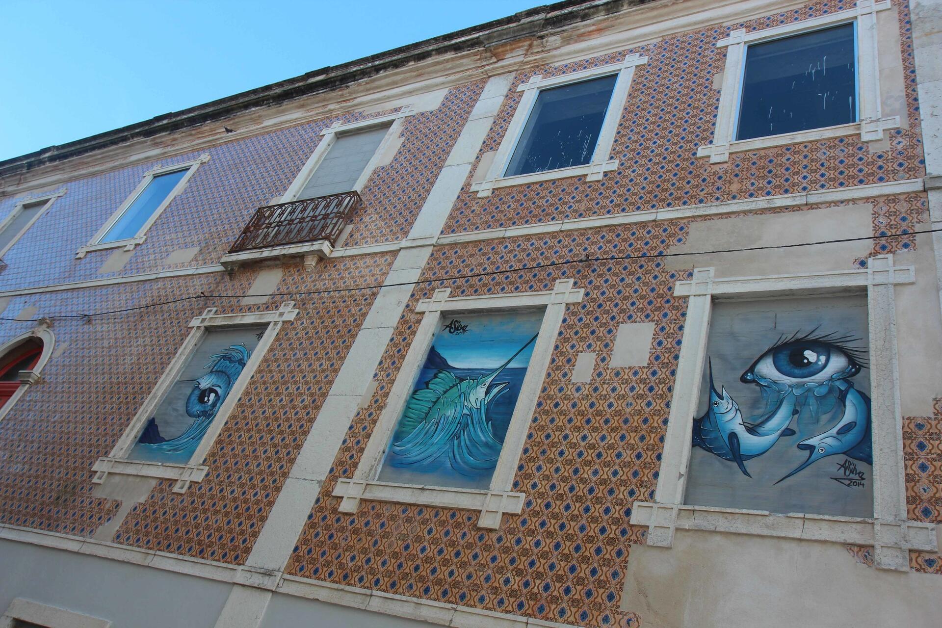 João Cruz e Gemeniano Cruz embelezaram o muro em frente à paragem de autocarros da Escola Básica Navegador Rodrigues Soromenho, sob o tema Metamorphosis e o artista João Cruz pintou ainda A Conserveira da Praça na Rua da República, na parede da frente sul do Mercado Municipal do peixe.