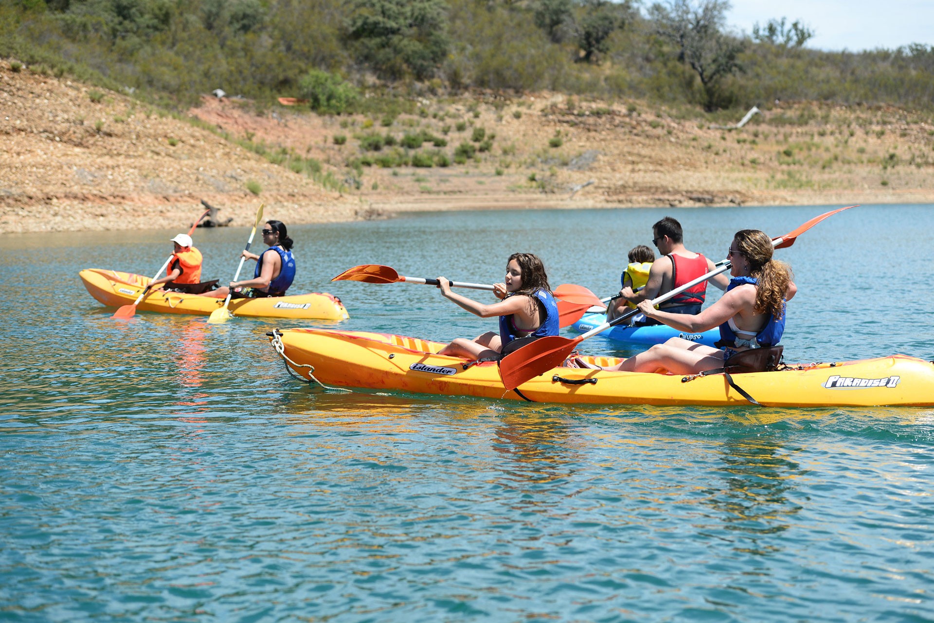 Pela beleza da paisagem alentejana em harmonia com as águas da barragem, os passeios de barco são um convite ao relaxamento e ao contacto com a Natureza. Os passeios de kayak permitem aliar a estes elementos uma atividade mais dinâmica e desportiva.